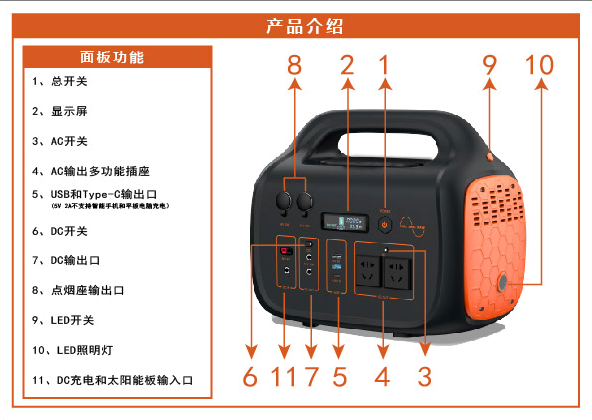 - รองรับการชาร์จและการคายประจุในเวลาเดียวกัน มีการใช้งานที่หลากหลาย สามารถใช้เป็นแหล่งจ่ายไฟ UPS ออนไลน์หรือเป็นแหล่งจ่ายไฟสำรองฉุกเฉินกลางแจ้ง สามารถตอบสนองอุปกรณ์ทางการแพทย์ในร่ม, เครื่องพิมพ์ขนาดเล็ก, โคมไฟต่างๆ, เครื่องทำความร้อนตู้ปลาขนาดเล็ก, โน๊ตบุ๊ค, และการตั้งแคมป์กลางแจ้ง ใช้เมื่อต้องการแสงสว่างและแหล่งจ่ายไฟ AC ในบางโอกาส เช่น การถ่ายภาพ เหตุฉุกเฉินจากอัคคีภัย การกู้ภัยฉุกเฉิน และการบรรเทาภัยพิบัติ