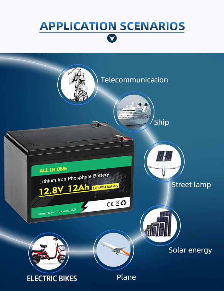 เราสามารถปรับแต่งชุดแบตเตอรี่ลิเธียม lifepo4 จาก 12V-96V, 10AH-600AH ซึ่งสามารถใช้ใน RV, EV, ระบบสุริยะ, E-bike, UPS, ระบบจัดเก็บพลังงาน, สถานีฐานโทรคมนาคม, E-scooter, E-tools, รถกอล์ฟ รถยก รถทำความสะอาด รถเข็นไฟฟ้า ฯลฯ
