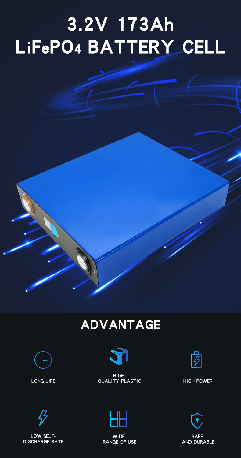 เซลล์แบตเตอรี่ LiFePO4 ขนาด 3.2V 173Ah ที่ได้รับการรับรองจาก UL นี้มีข้อดีดังต่อไปนี้: