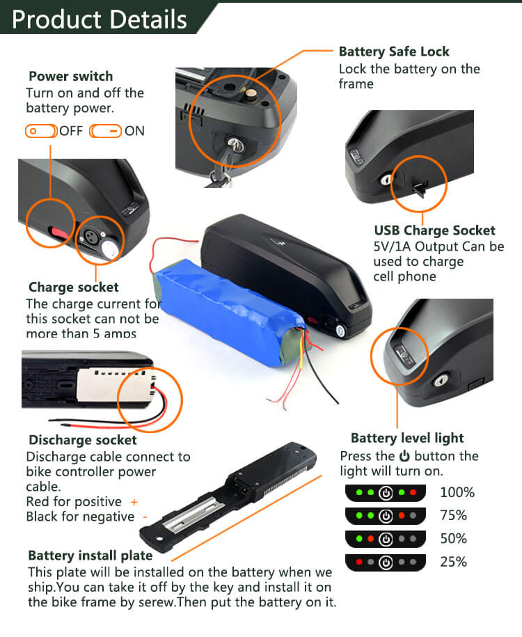 | ชื่อผลิตภัณฑ์ | Electric Bike Kit Battery Electric Bicycle battery 48V 15aH Rechargeable Batteries 18650 cell |