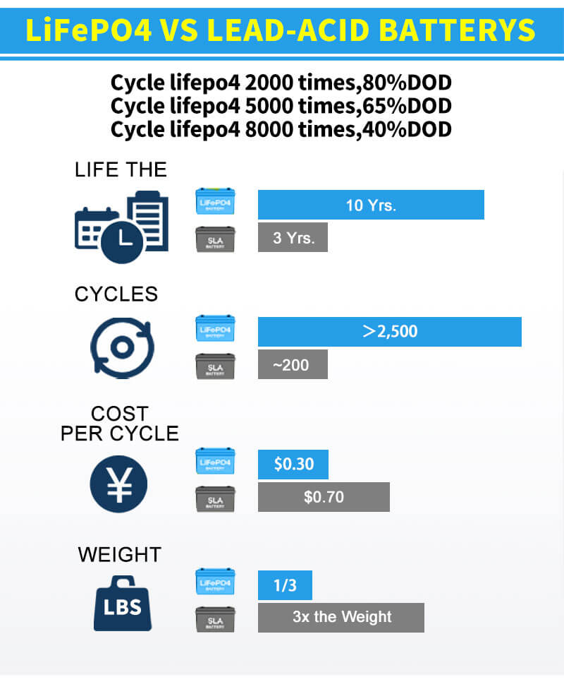 ♦อายุการใช้งานที่ยาวนานขึ้น: มีอายุการใช้งานที่ยาวนานขึ้นถึง 20 เท่าและอายุการใช้งานลอย / ปฏิทินนานกว่าแบตเตอรี่กรดตะกั่วถึง 5 เท่าช่วยลดต้นทุนการเปลี่ยนทดแทนและลดต้นทุนรวมในการเป็นเจ้าของ